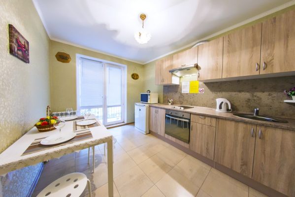 3)В квартире есть - ЖК-телевизор, гладильная доска, заправленная двуспальная кровать, диван, посуда для приготовления пищи, всегда чистое постельное белье и полотенца.