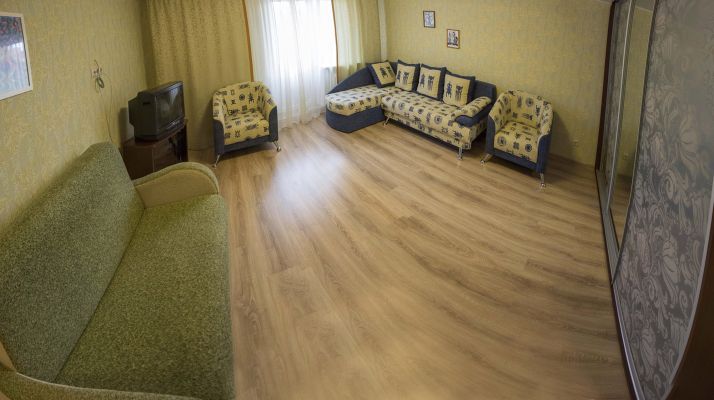 Сдается на сутки, неделю и более уютная, светлая, с очень хорошим ремонтом однокомнатная квартира для 1-4 человек, есть все необходимое для отдыха: два двуспальных раскладных дивана, шкаф-купе, чистое, глаженое постельное белье, полотенца, тапочки, шампунь и гель для душа, посуда, моющие средства, чай, кофе, печеньки, гладильная доска, большая застекленная лоджия, сушилка для белья.