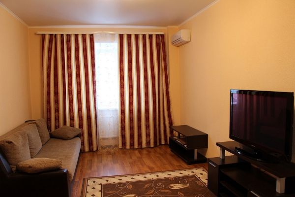 В квартире: евроремонт, полностью обустроенная кухня, большая двуспальная кровать.