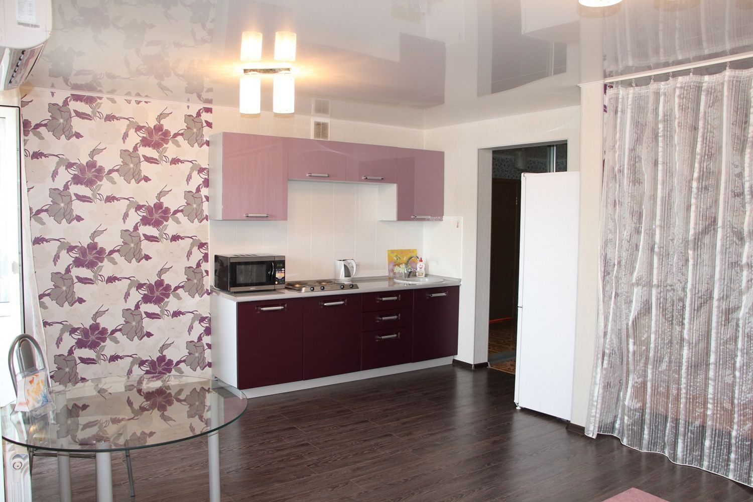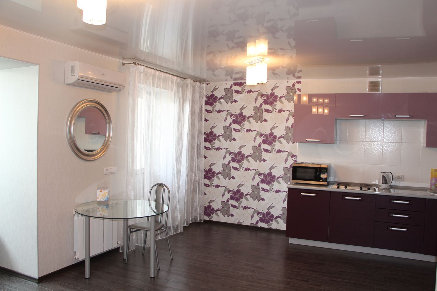 В квартире: дизайнерский евроремонт, полностью обустроенная кухня, большая двуспальная кровать.